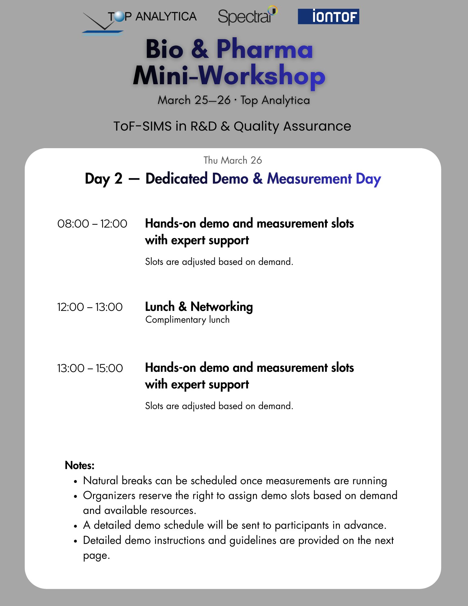 - Interactive hands-on demos with ToF-SIMS